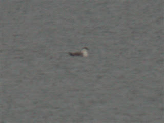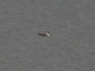 Si è alzato in volo due volte a causa di gabbiani reali che si sono posati vicino al lui. In un caso un gabbiano reale lo ha inseguito e ho potuto notare le dimensioni più piccole del labbo (come quelle di un gabbiano comune); non ho visto spot chiari sulle ali.