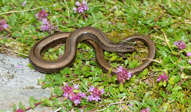 Si fa tardi e abbiamo gli sciatt, i pizzoccheri e la polenta che ci aspettano, da gustare in allegra compagnia. Prendiamo la strada del ritorno e ci ritroviamo tutti a pochi metri dal rifugio; ci aspettano lì i nostri erpetologi con una sorpresa: una femmina di orbettino (Anguis veronensis) che riacquista la libertà non appena terminate le foto di rito.