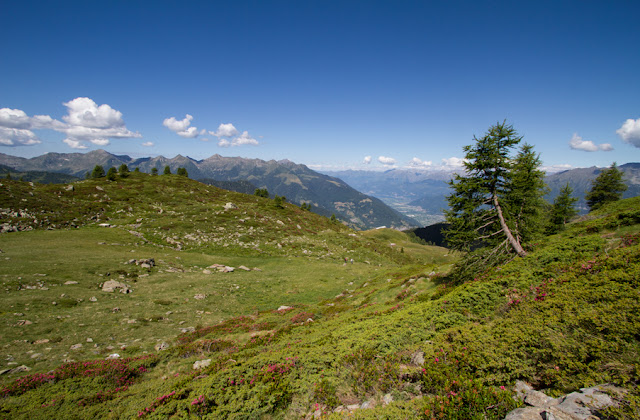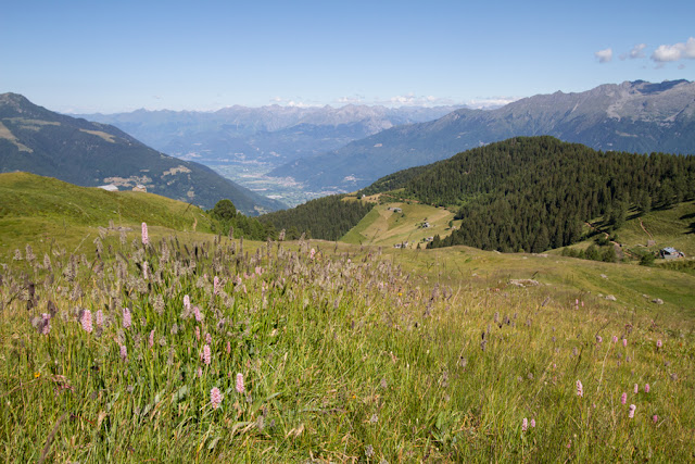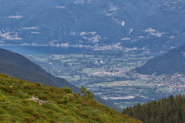 In lontananza brilla al sole uno spicchio dell’Alto Lario con il Pian di Spagna e, in lontananza, monti, dove spiccano Sasso Canale e Berlinghera; il panorama è stupendo! Alla nostra sinistra possiamo ammirare il Pizzo dei Tre Signori che visto da lì ha una sagoma ben diversa da quella che siamo abituati a vedere.