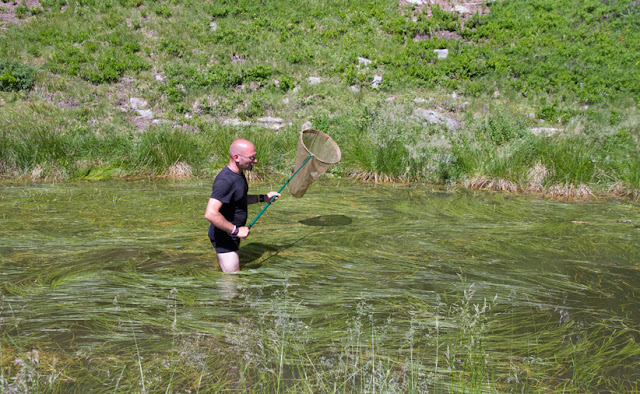 Sul laghetto, opera del Parco delle Orobie Valtellinesi, volano velocissime le libellule, alcune delle quali vengono catturate (senza alcun rischio per la loro incolumità) con l’ampio e apposito retino e subito dopo il riconoscimento e foto vengono rilasciate.
