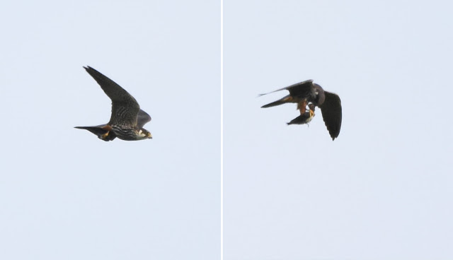 Lodolaio (Falco subbuteo) 14 Lug 2018 Pian di Spagna (CO), tra gli artigli un balestruccio. Fotografia Giovanni Ferrari