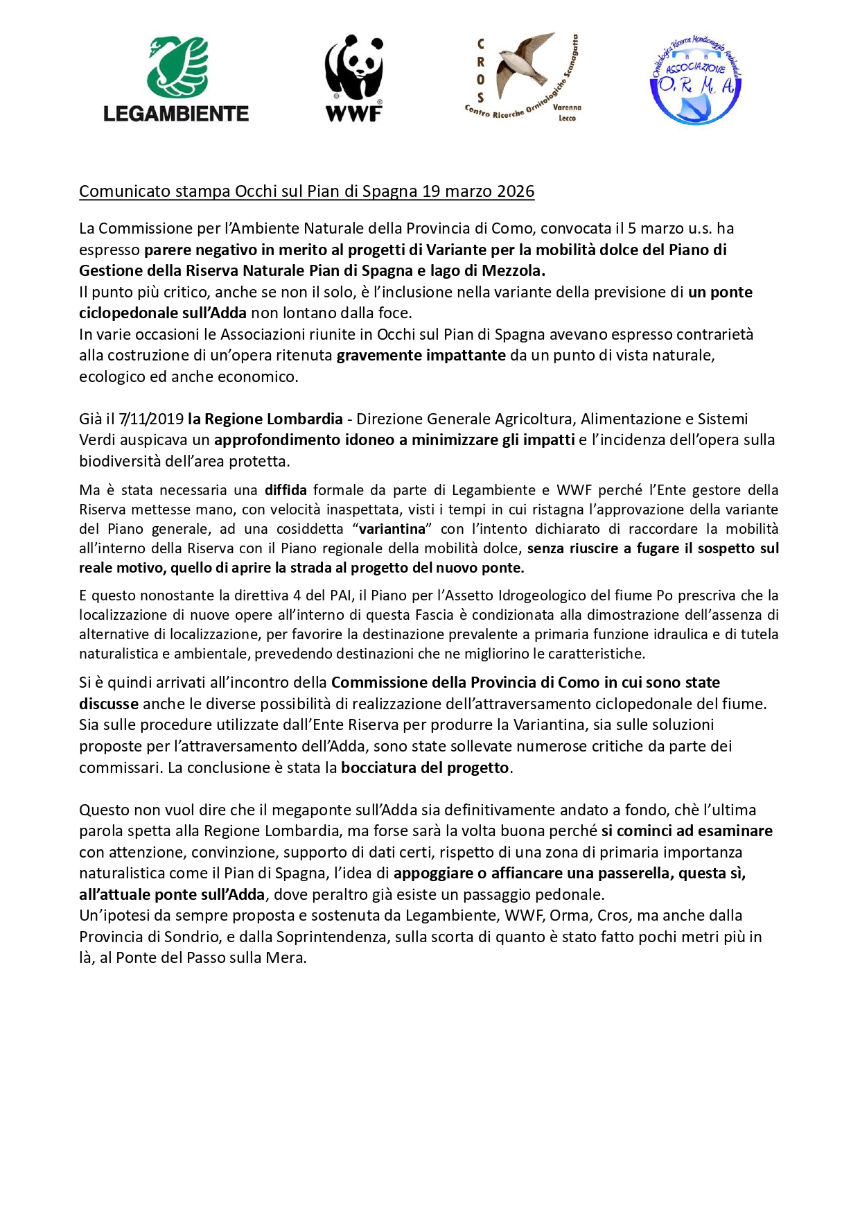Comunicato stampa Occhi sul Pian di Spagna 19 marzo 2026