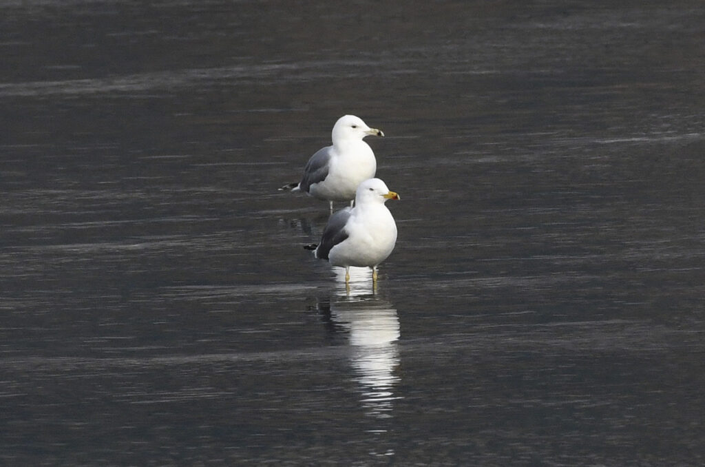 Lago di Olginate (LC), foto a confronto dove in primo piani c’è un Gabbiano reale, dietro un Gabbiano reale pontico.