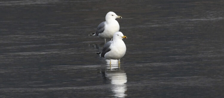 Lago di Olginate (LC), foto a confronto dove in primo piani c’è un Gabbiano reale, dietro un Gabbiano reale pontico.