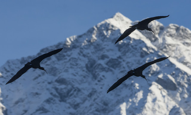 Dongo (CO), gruppo di quattro individui appartenenti al progetto di reintroduzione waldrapp.