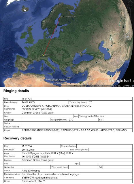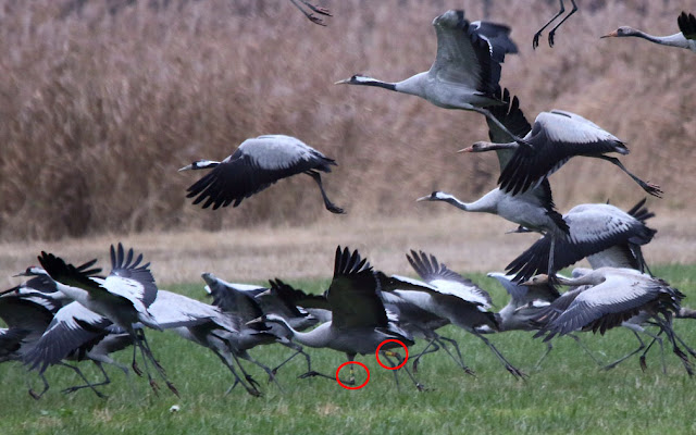 Novembre 2016, uno stormo di Gru in Riserva del Pian di Spagna (CO), tra queste una ha un anello finlandese.
