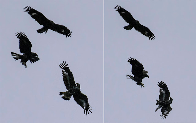 Monti di Germasino (CO), particolare raggruppamento di 5 aquile reali, Fontana Giovanni è riuscito a documentarne tre insieme in atteggiamento non proprio... Read More