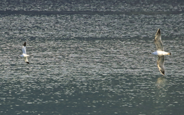 Alto Lario (CO-LC), specie accidentale per le due provincie. Osservazione e Fotografia di Marco Esposito. L’avocetta infastidita da un gabbiano reale