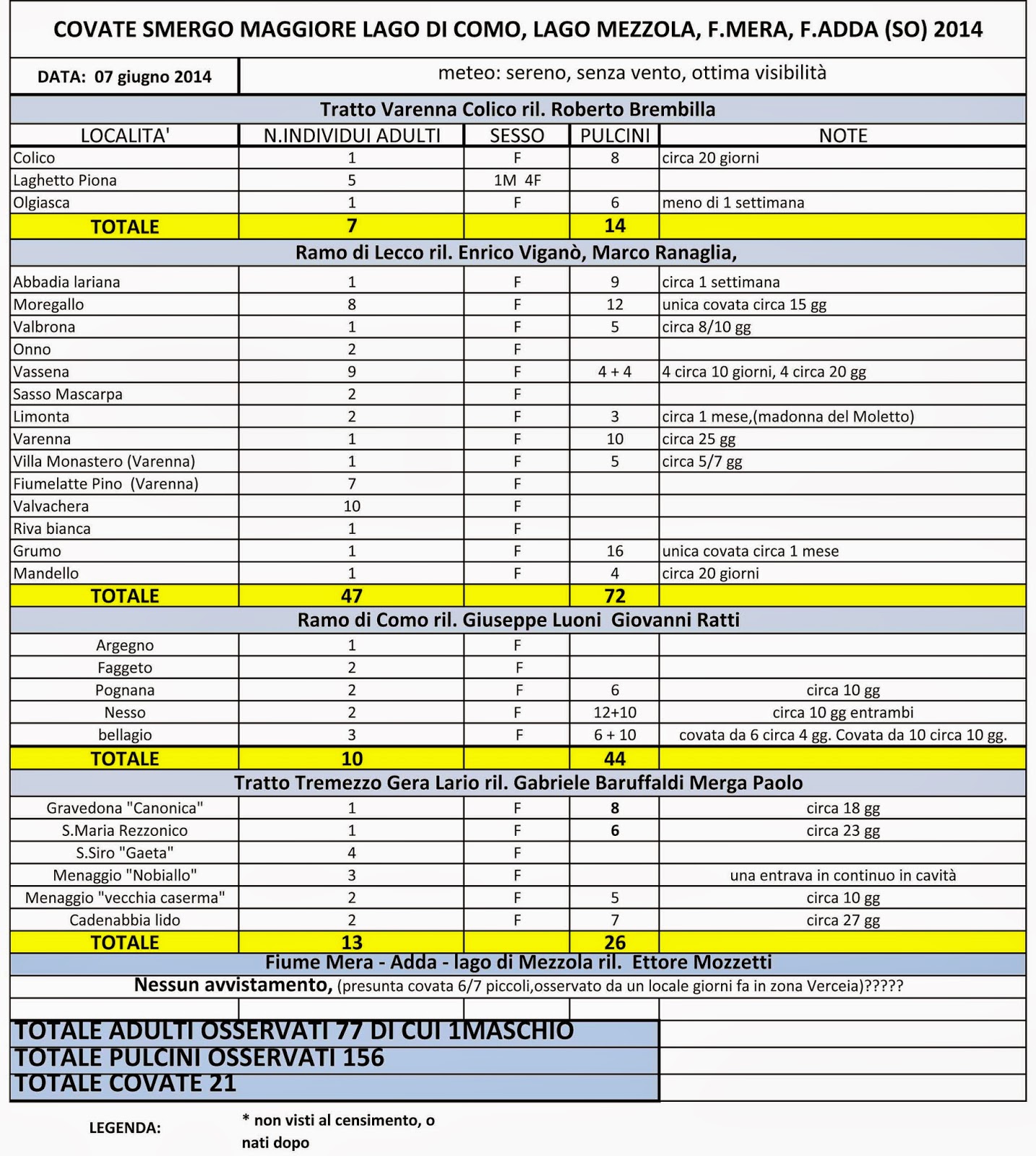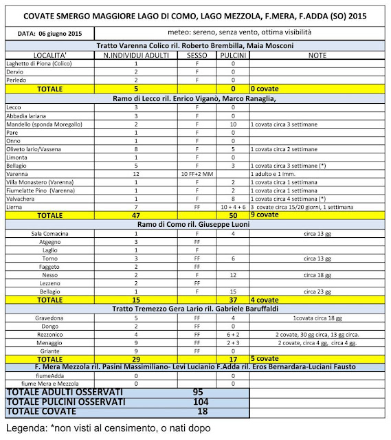 Il 9 giugno 2012, si è svolto il censimento delle covate di Smergo maggiore sul Lago di Como, covate così distribuite: Ramo... Read More