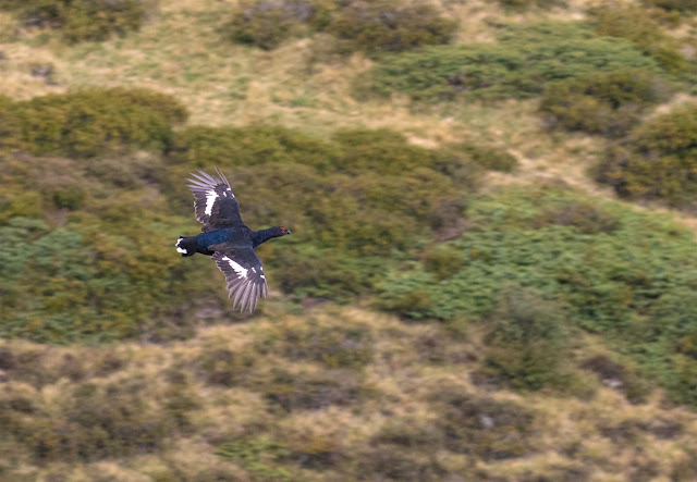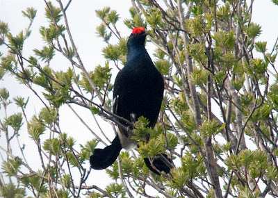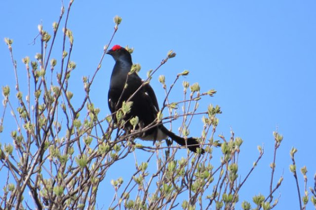 18 maggio, Monti di Germasino (CO), maschio e femmina di Fagiano di monte Tetrao tetrix. Fotografia e osservazione di Giovanni Fontana.