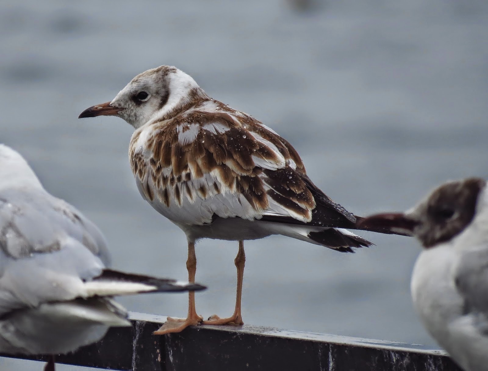 Lago di Pusiano (LC-CO), sulla sinistra il giovane di corallino mentre alla destra un giovane di gabbiano comune. Fotografia di Walter Sassi.