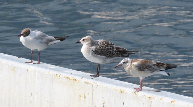 Colico (LC), un individuo giovane tra due gabbiani comuni. Fotografia Marco Esposito.