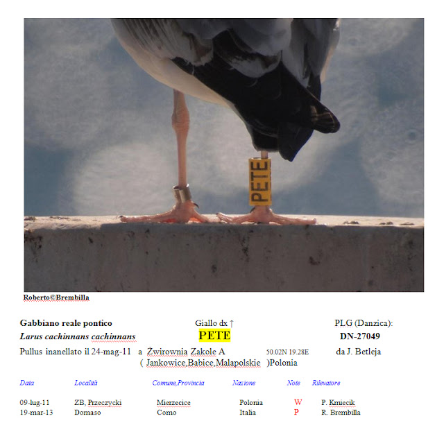 Interessante osservazione di Gabbiano reale pontico (Larus cachinnans) sul Lago di Olginate (LC), osservazione e fotografia di Enrico Viganò.