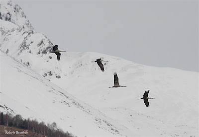 In aumento la presenza delle Gru in Pian di Spagna, sabato 27 marzo 4 individui.