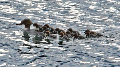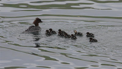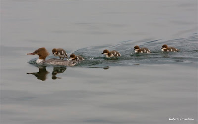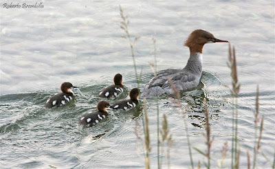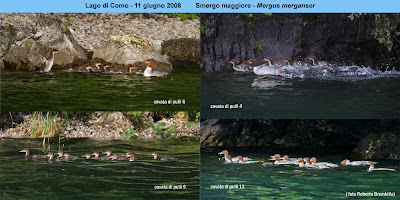 La nidificazione 2009 dello Smergo maggiore sul Lago di Como promette bene, 30 aprile Varenna (LC) 9 pulli. (Roberto Brembilla)